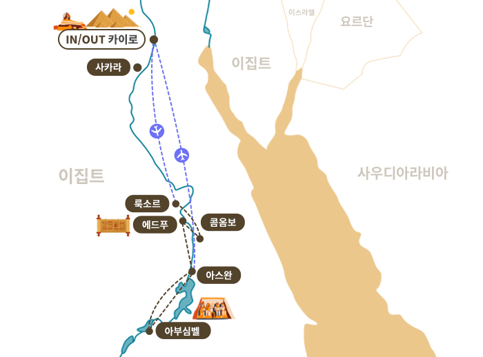 - 이집트 여행시 신전 등 대리석으로 이루어진 바닥을 걸어야 하기 때문에 편한 신발을 신으시기 바랍니다.